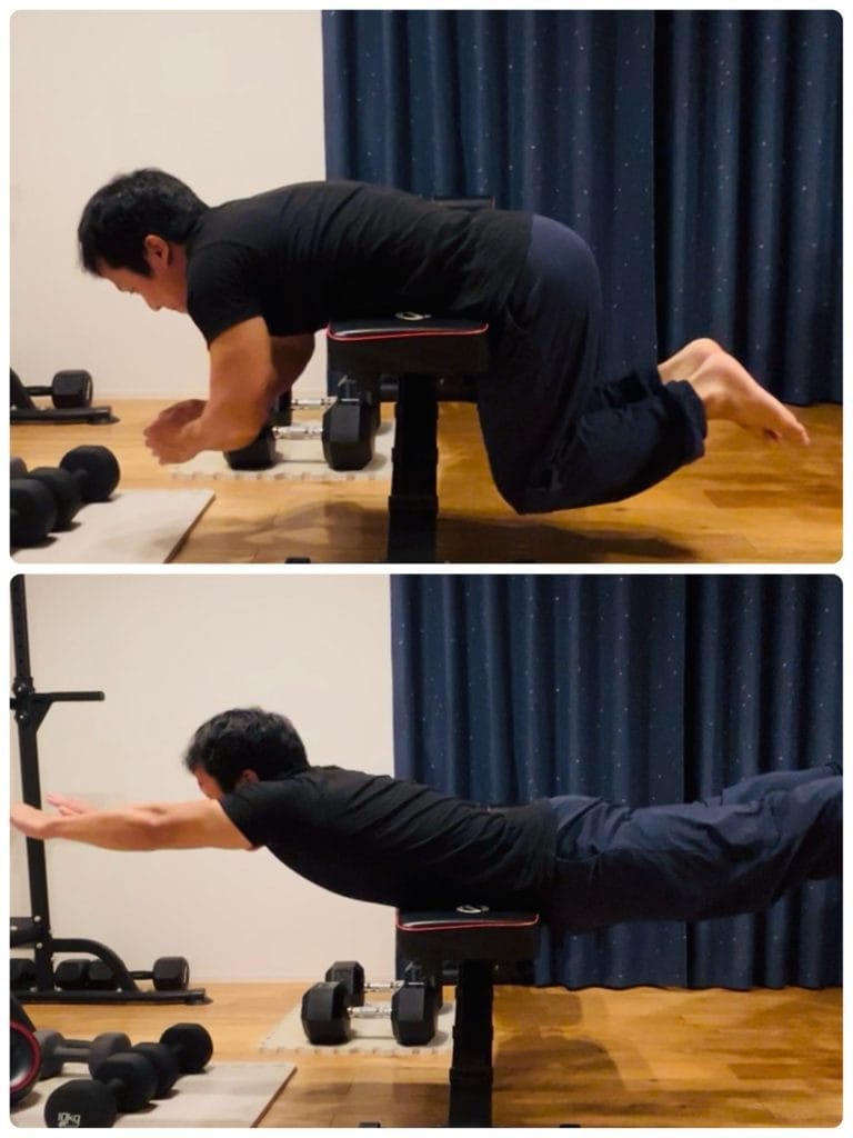 一方で、バックエクステンションマシンと言われる器具や、バックエクステンションもできる構造になっているトレーニングベンチを使えば、ダンベルなどのウェイトを抱えてバックエクステンションが行いやすくなります。