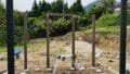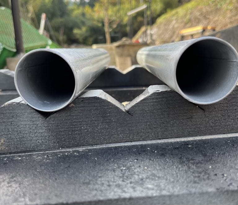 垂木や廃材にノコギリやグラインダーで凹みを作り、凹みでパイプを固定します。