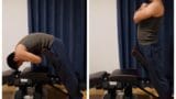 一方、後者の僧帽筋や広背筋を狙う場合は、上体を立てて、両腕は身体の左右か少し後方に置くような意識で行います。