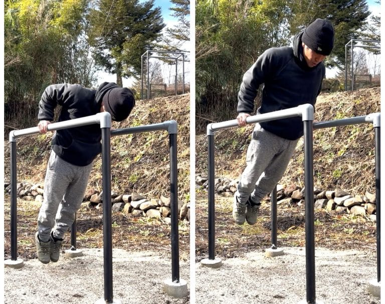 ストレートバーディップスは公園の鉄棒でできますが、パラレルバーディップスを行える場所は限られています。