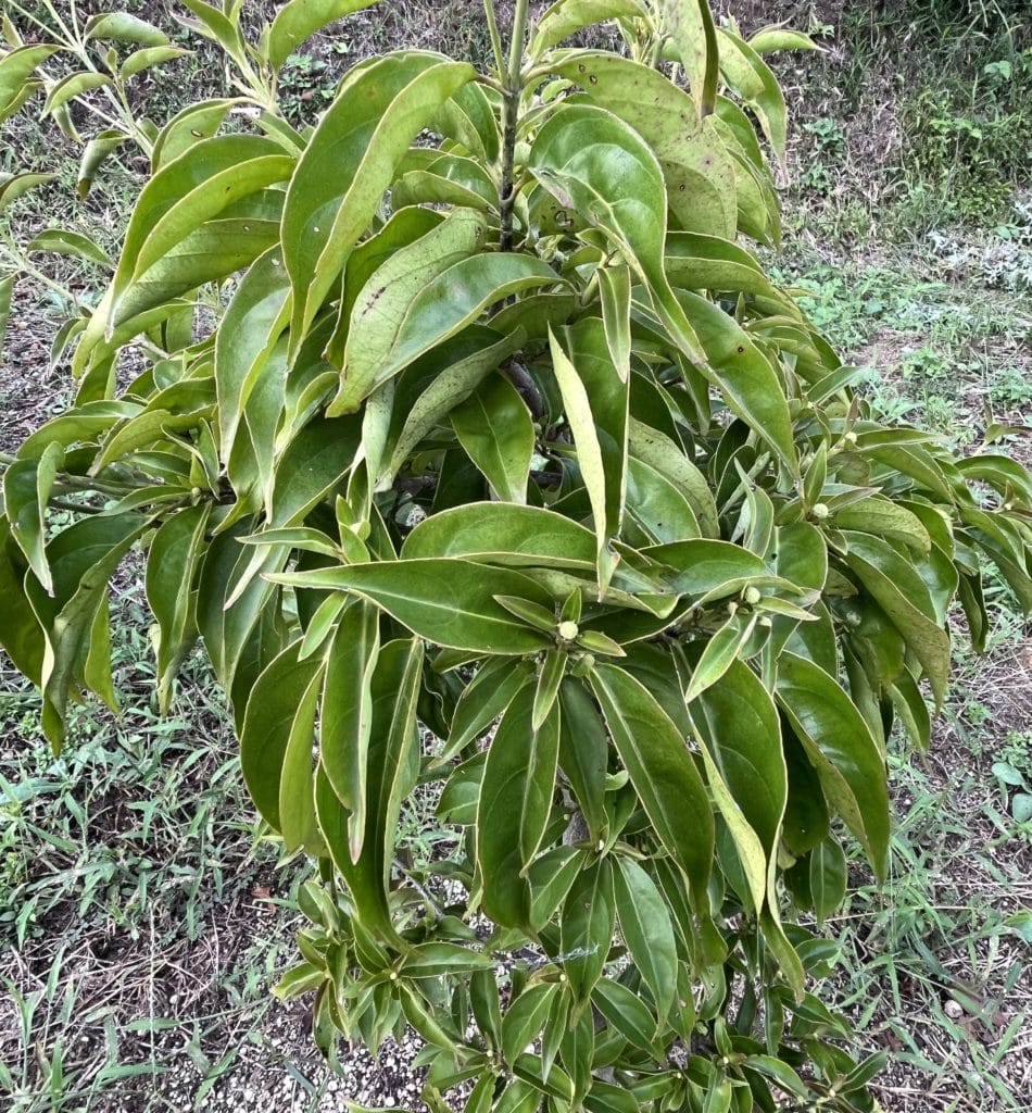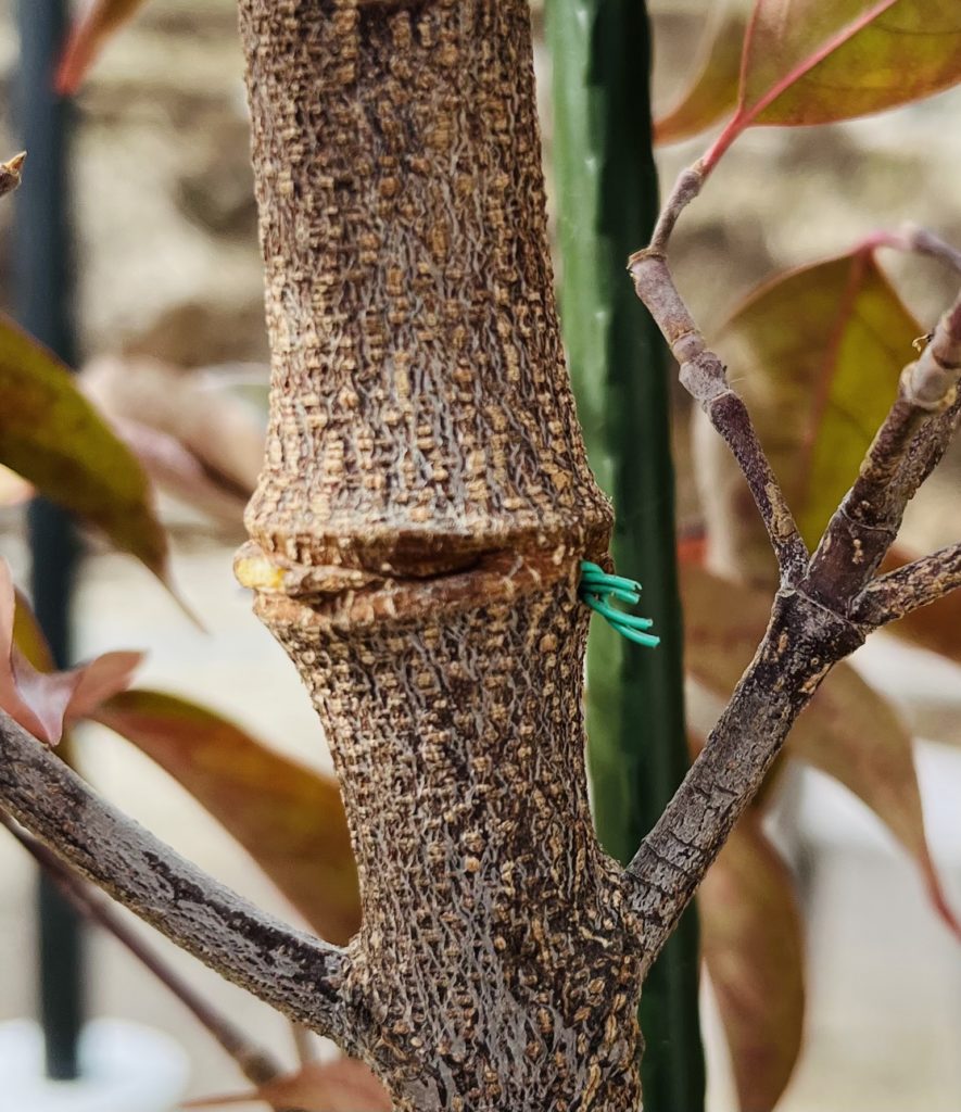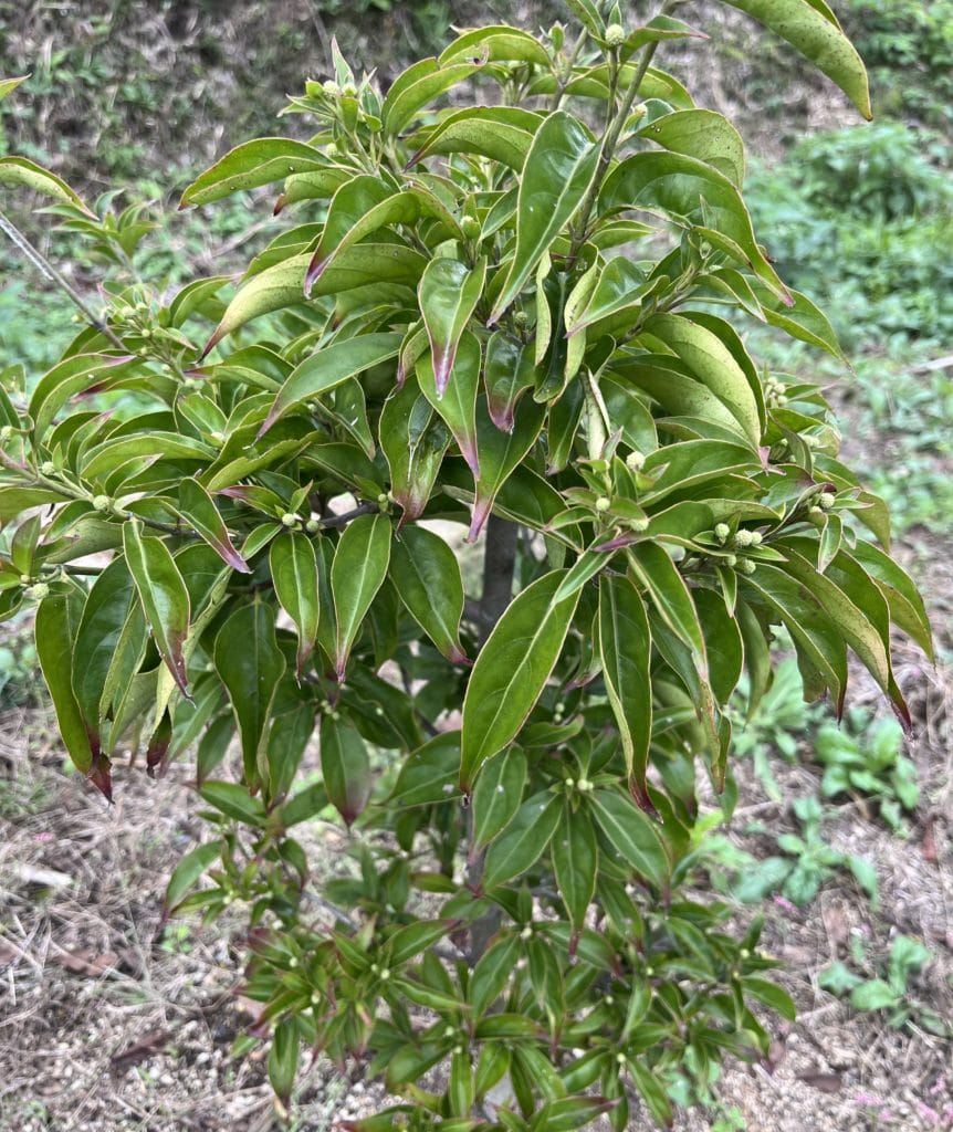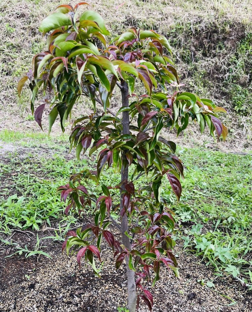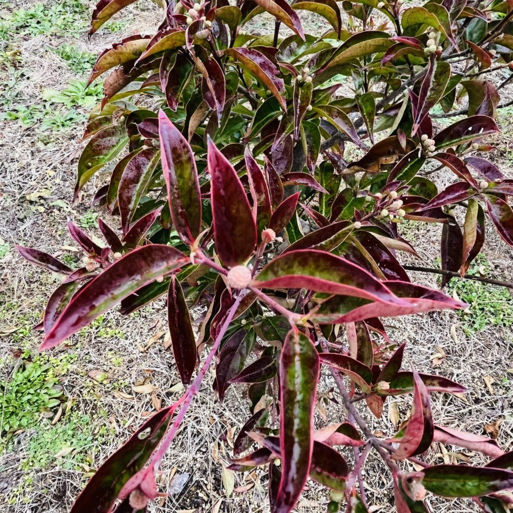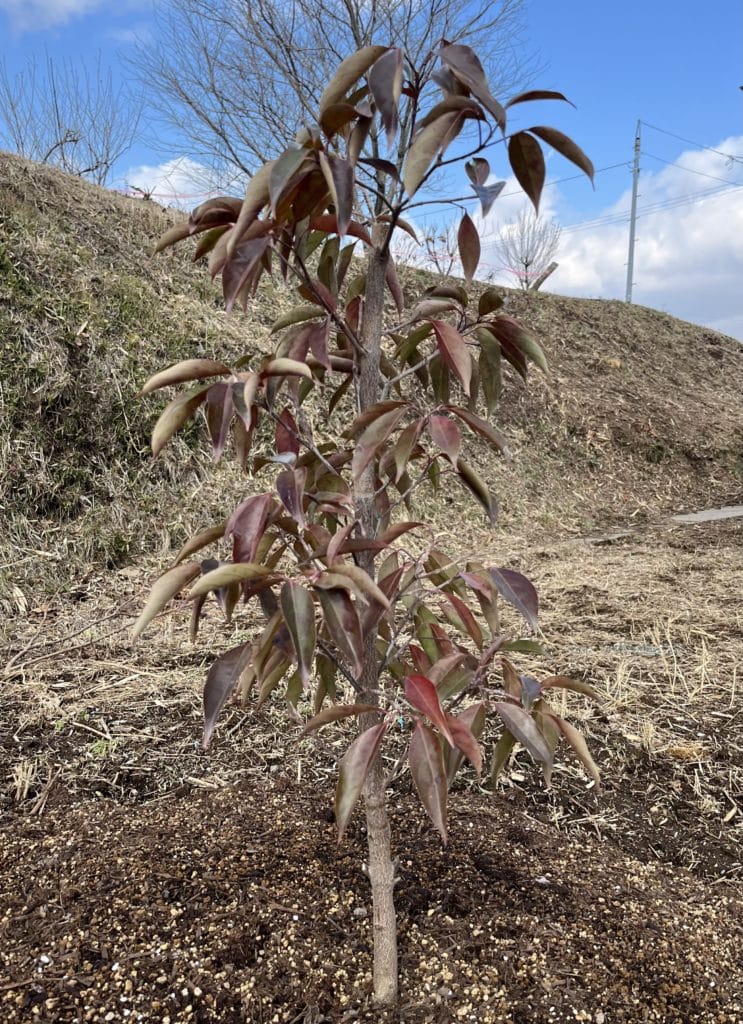 常緑樹とはいえ、葉の様子は落葉前の落葉樹の葉の様子に近い雰囲気があり、実際、植え付けて間もなくの大寒波到来もあってか、ほとんど落葉してしまいました。