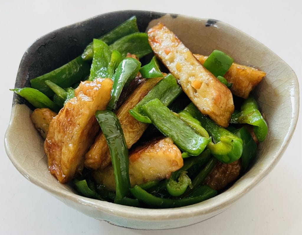 次は、さつま揚げとピーマンのきんぴらです。