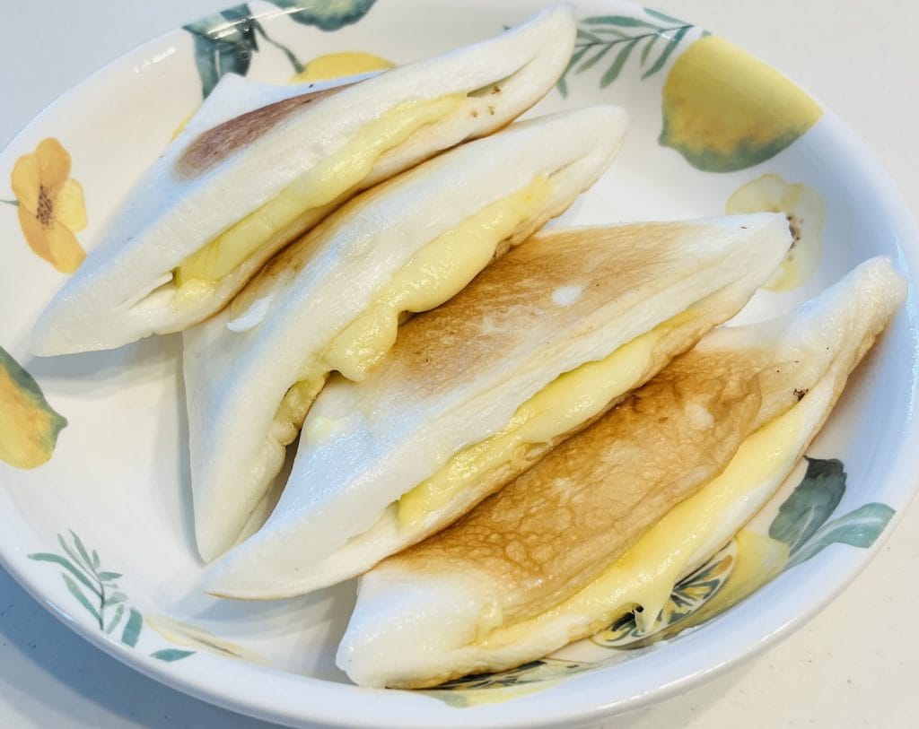 両面に焼き色をつけ、ヘラなどで優しく押してみて、チーズが柔らかくなっていたら完成です。