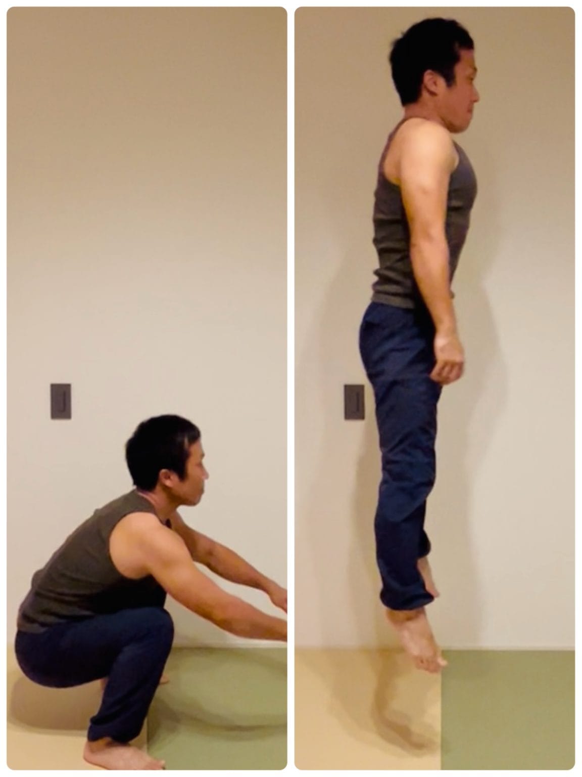 言葉ではなかなか伝わりづらいかもしれませんので、慣れない方は、はじめから思い切りジャンプをするのでなく、試して感覚を掴んでから本気のトレーニングに挑んでください。
