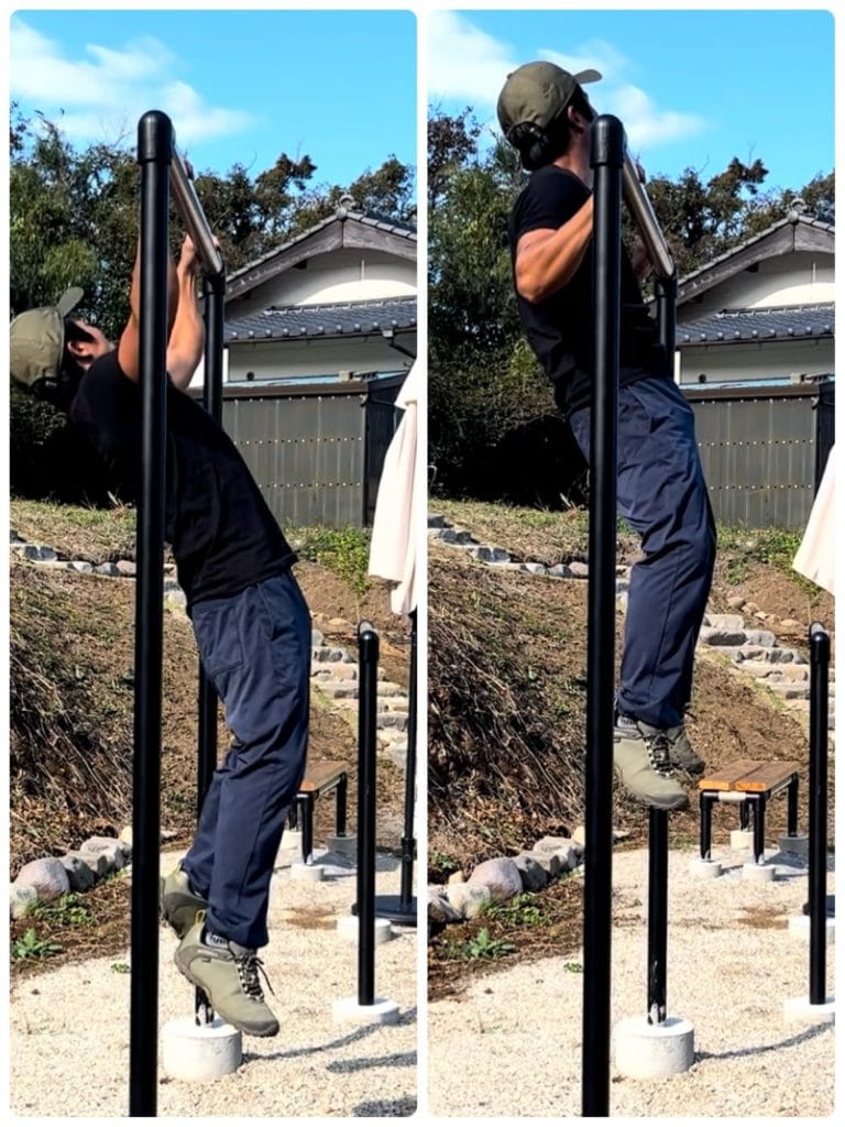 ぶら下がり続けるだけでもいいですし、身体を引き上げようと力を入れたり抜いたりを繰り返すのも正攻法です。少しずつ身体が上がるようになると思います。