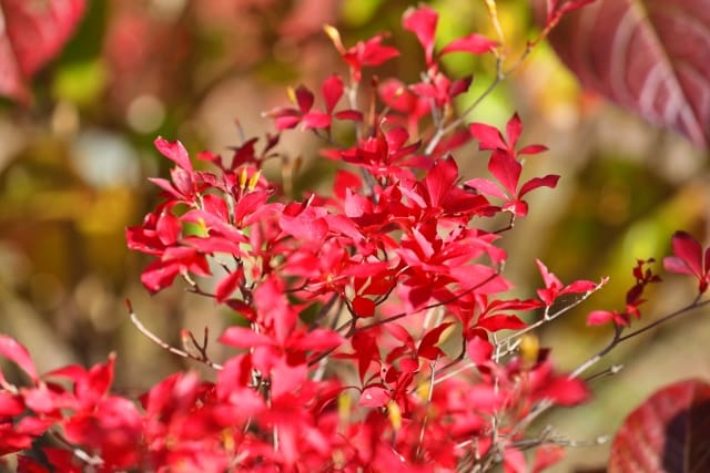 山に自生している場合は幹がスラっと伸びて、枝数もすっきりしていることがありますが、日がよく当たる畑や庭などで育てられると、枝や葉が茂りやすいのがドウダンツツジの特徴です。