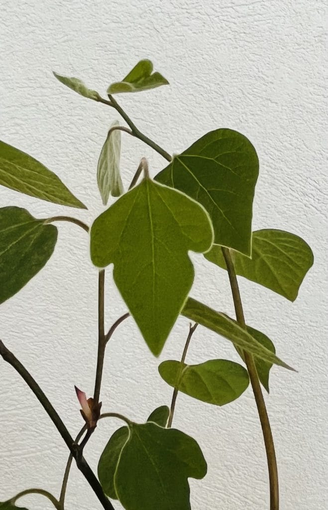 葉が3裂している場合の形が恐竜の足型に例えられるのですが、左右非対称に2裂している場合もありますし、割れていない葉もあります。
