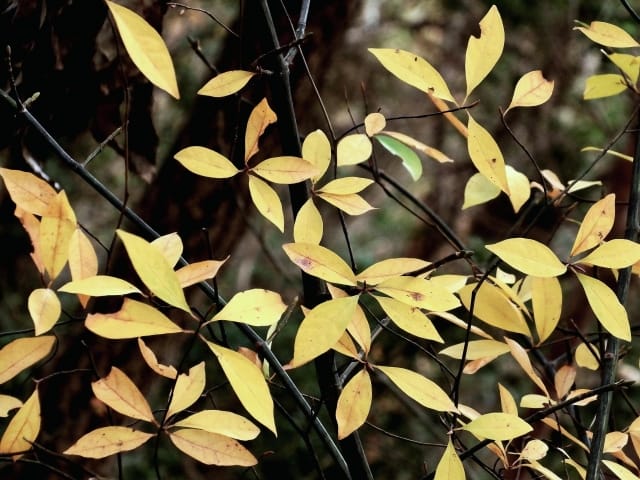 クロモジと次に取り上げるダンコウバイは同じクスノキ科クロモジ属の樹種で、しっかりと黄色に染まり、比較的、落葉までの期間が長い印象です。