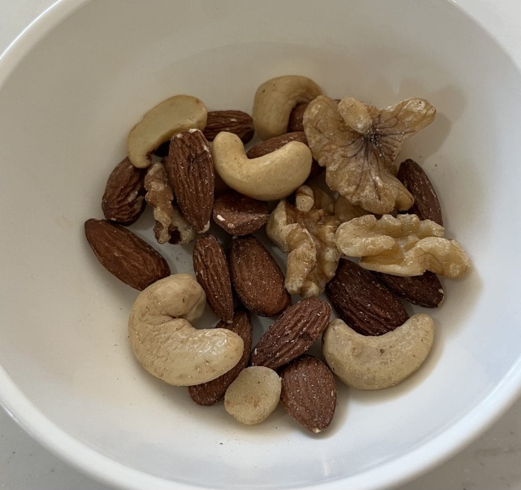 脂質が多いということで広く認知されているように感じますが、ナッツ類の脂質には人体にとって良質な脂肪酸が多く含まれます。ただし、いくら良質とは言え、高脂質な食材であることに違いはないため食べ過ぎには注意です。私は最大でも1食30g程度にしています。