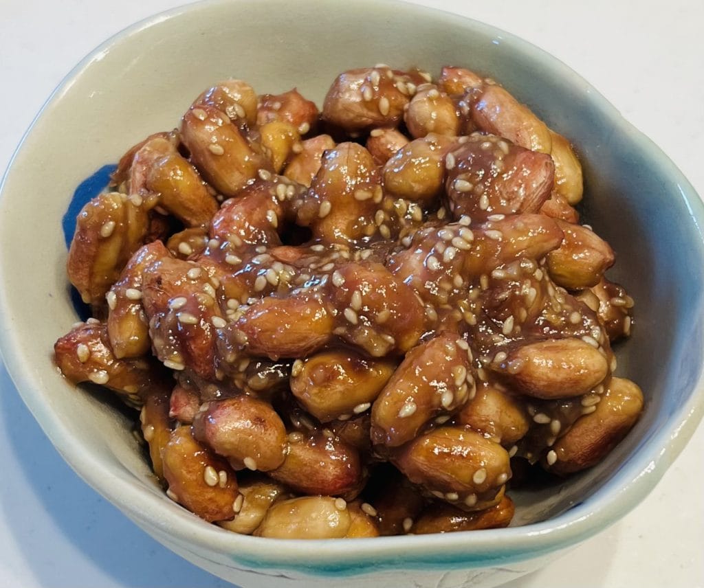 次は、ミックスナッツにメープルシロップときなこを和える、間食におすすめなお菓子的なレシピです。