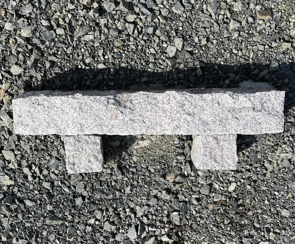 砂利の上に置くので、同じ石である御影石なら完璧な水平や直線が出せないかもしれない素人仕事でも違和感が出にくいのではないかという、共感を得にくそうな考えもありました。