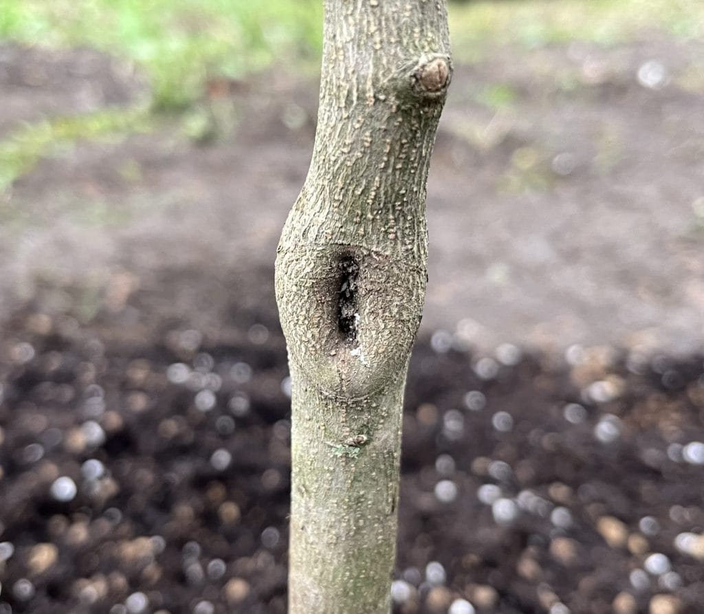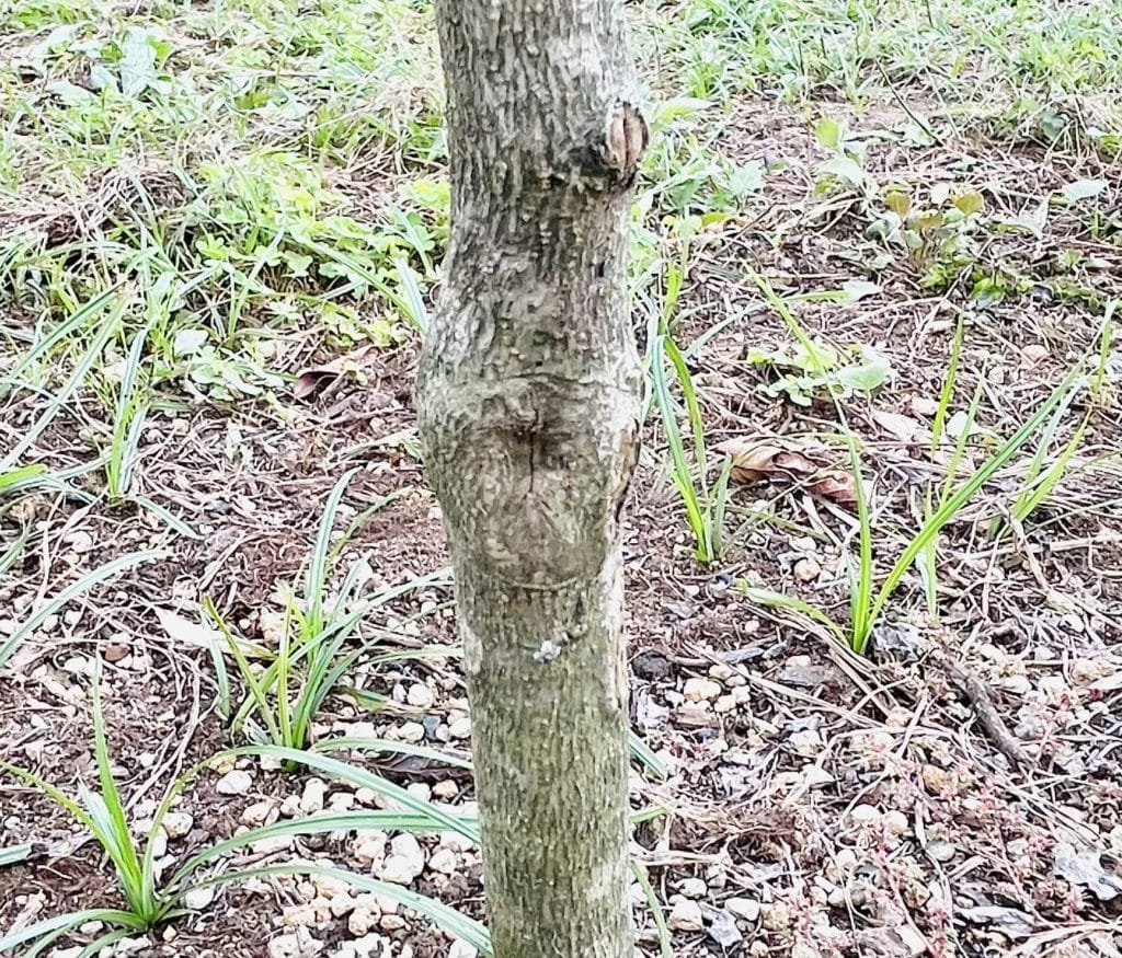 穴が塞がっているのかイマイチ確信が持てず、当該部分の幹だけ瘤のように少しモリっとなっています。