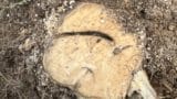 食害痕の部分から10cmほど上のあたりに縦に5cmくらいのヒビ、食害痕と同じ高さのあたりに2か所の1cmほどのヒビです。