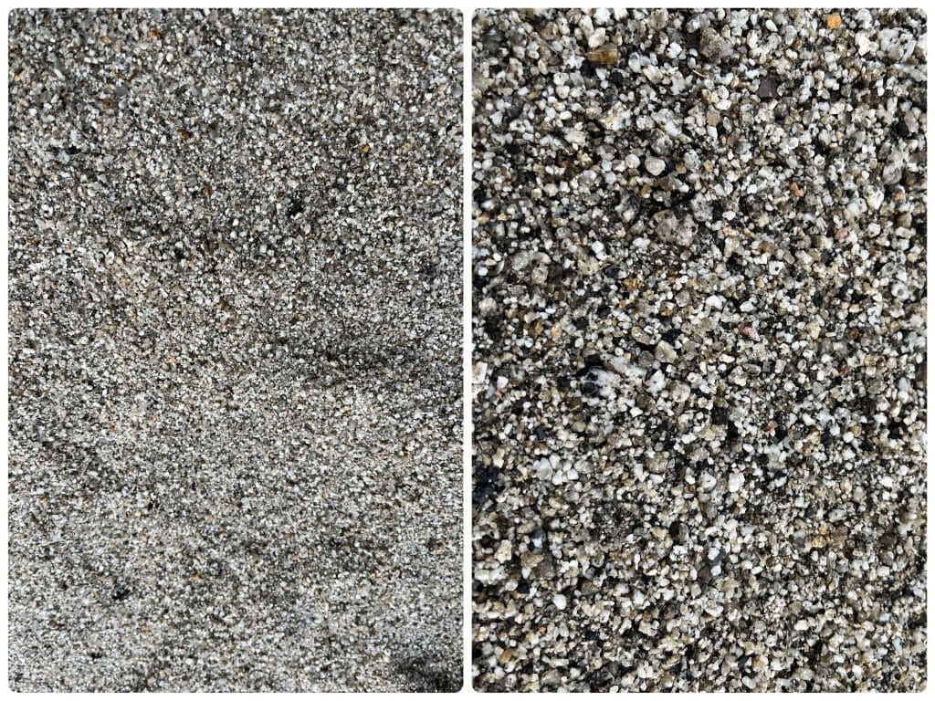 もちろん、ご自身で見て触って確認して欲しいのですが、そうしたタイプの山砂はコンクリート資材として陳列されている山砂より粒が粗く、不揃いな傾向があります。