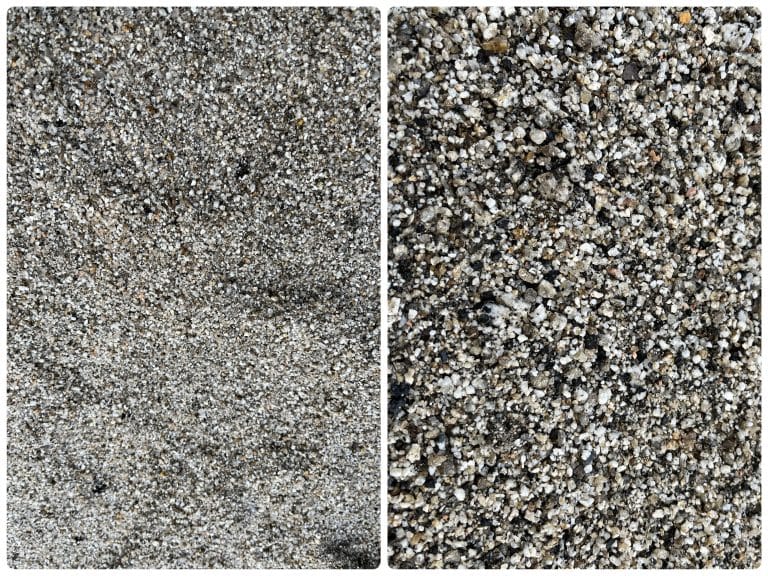 また、粒が不揃いなのはコンクリートの荷重に対する強度にとっては良い点なのですが、この手の山砂は泥の成分が多い場合があり、泥が多く混ざることによって強度が弱くなる可能性もあるため、DIYでセメントと混ぜるのには気をつけた方が良いと思います。
