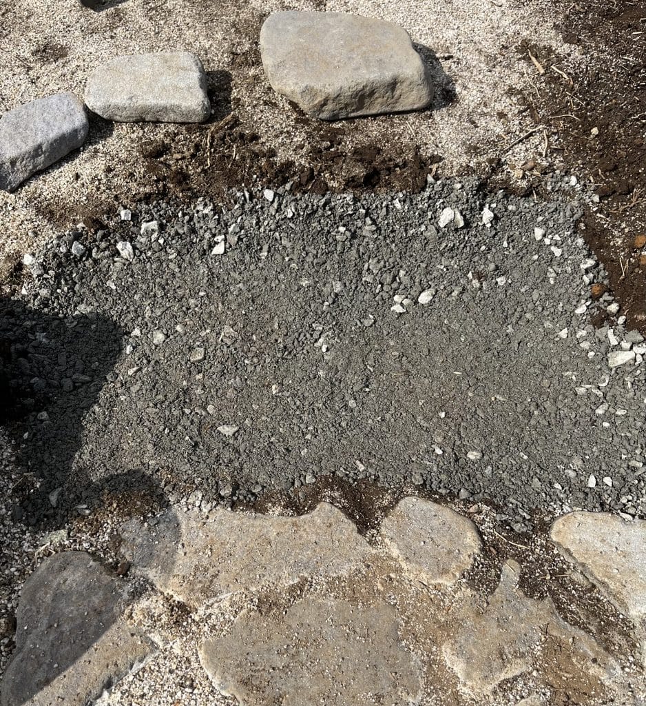 奥に使用する石は、手前に使用する石とは違い、高さを出す必要はないので、踏んで割れない程度であれば問題ありません。