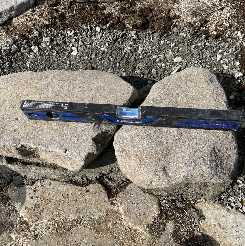 なお、実際に組んでいく過程で、石の組み合わせを変更したり、幅と奥行きを調整するための石の足し引きをしたりすることが往々にしてあります。仮置きの段階で決めていた組み合わせに固執する必要はないと思います。