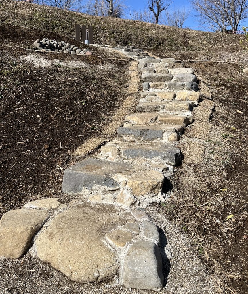 石段には自然な雰囲気がありつつ、一度きちんと作れば、基本的に作り直しの必要がないという特徴があります。