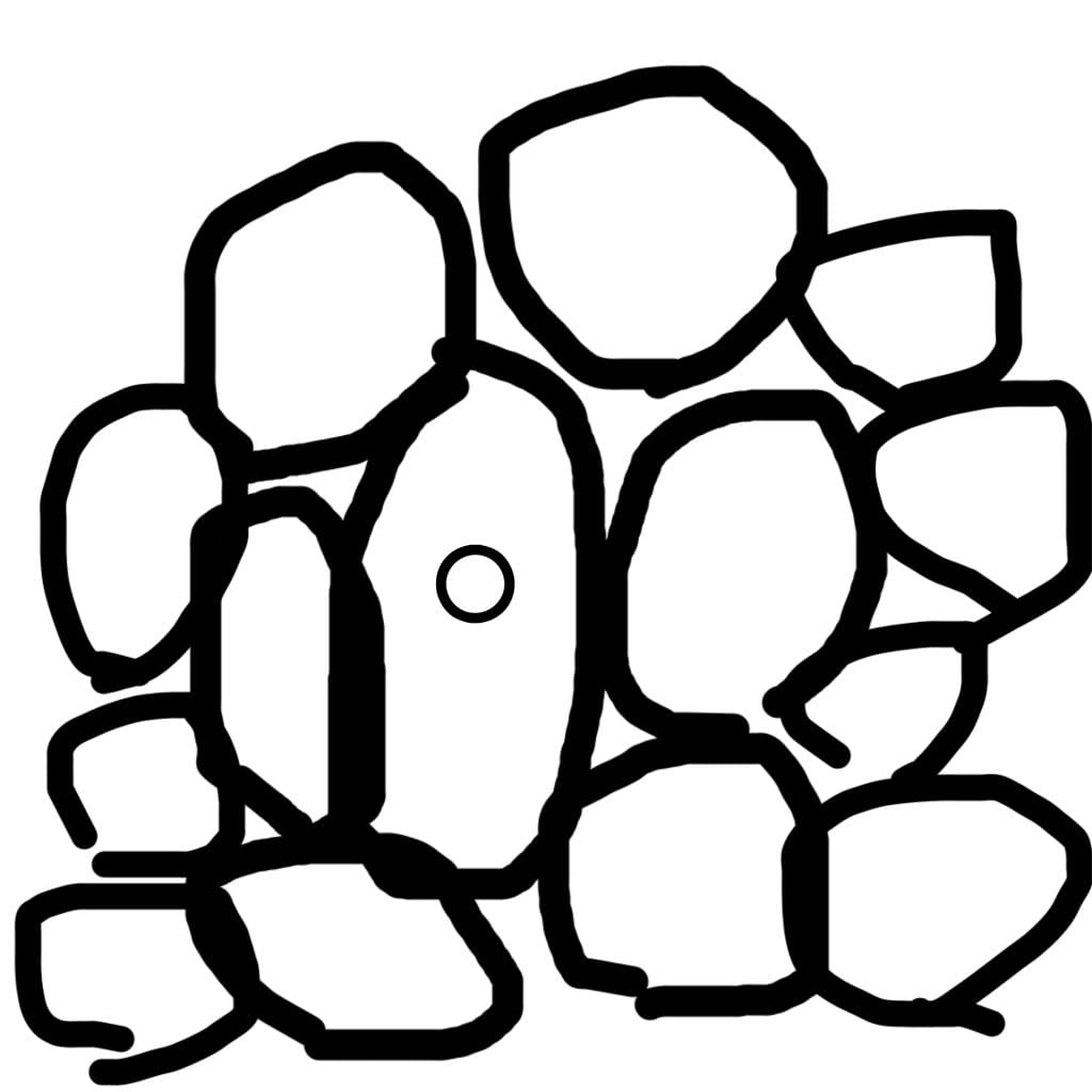 平らで厚みが均一な積み石を立てるように置いたり、地面に対して水平になるように置いたりすると、周囲の積み石と圧を分け合いにくくなります。〇の石が例です。