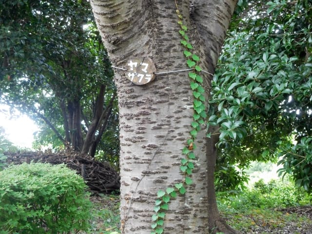 ヤマザクラの幹は写真のように横筋が出てくるのが特徴で、ザラザラした見た目と触り心地です。