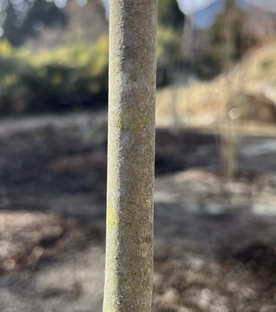 アオダモの幹肌は凹凸が少なくスベスベしています。白斑が出やすいのも特徴で、幹肌だけでもおしゃれに見えます。