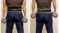 サイドレイズは、ここから、身体の側方に腕を上げます。肘は伸ばすか少し曲げて固定したまま動作してください。