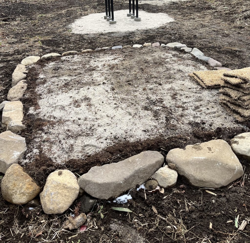 下の写真は今回芝生を敷く場所の下地の準備が一旦できた状態です。